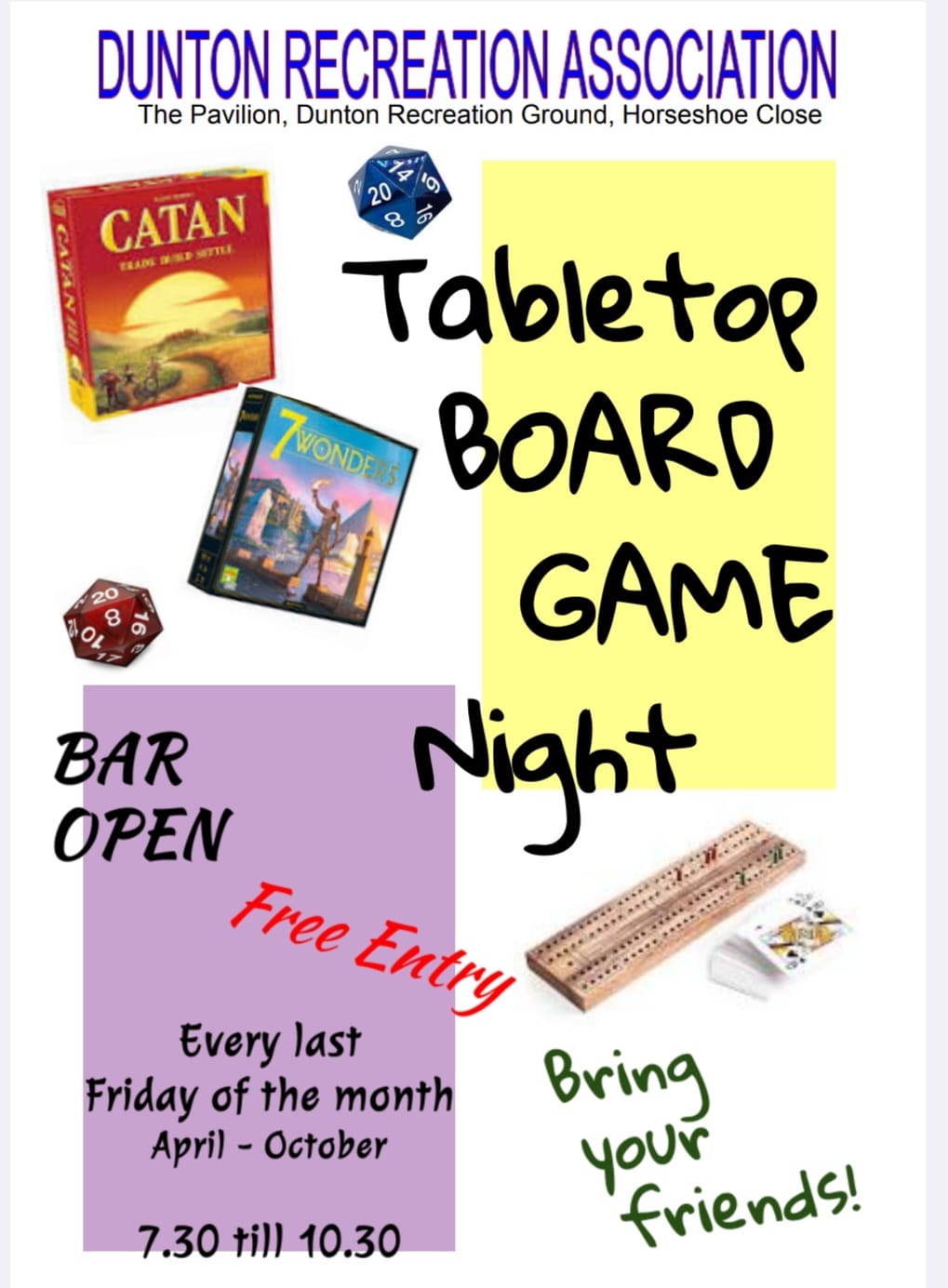 Every last Friday April to October - Tabletop Board Game Night 7.30 - 10.30